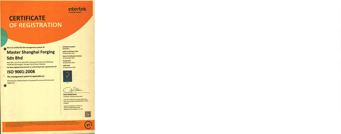 Intertek Certificate of Registration | ISO 9001 : 2008